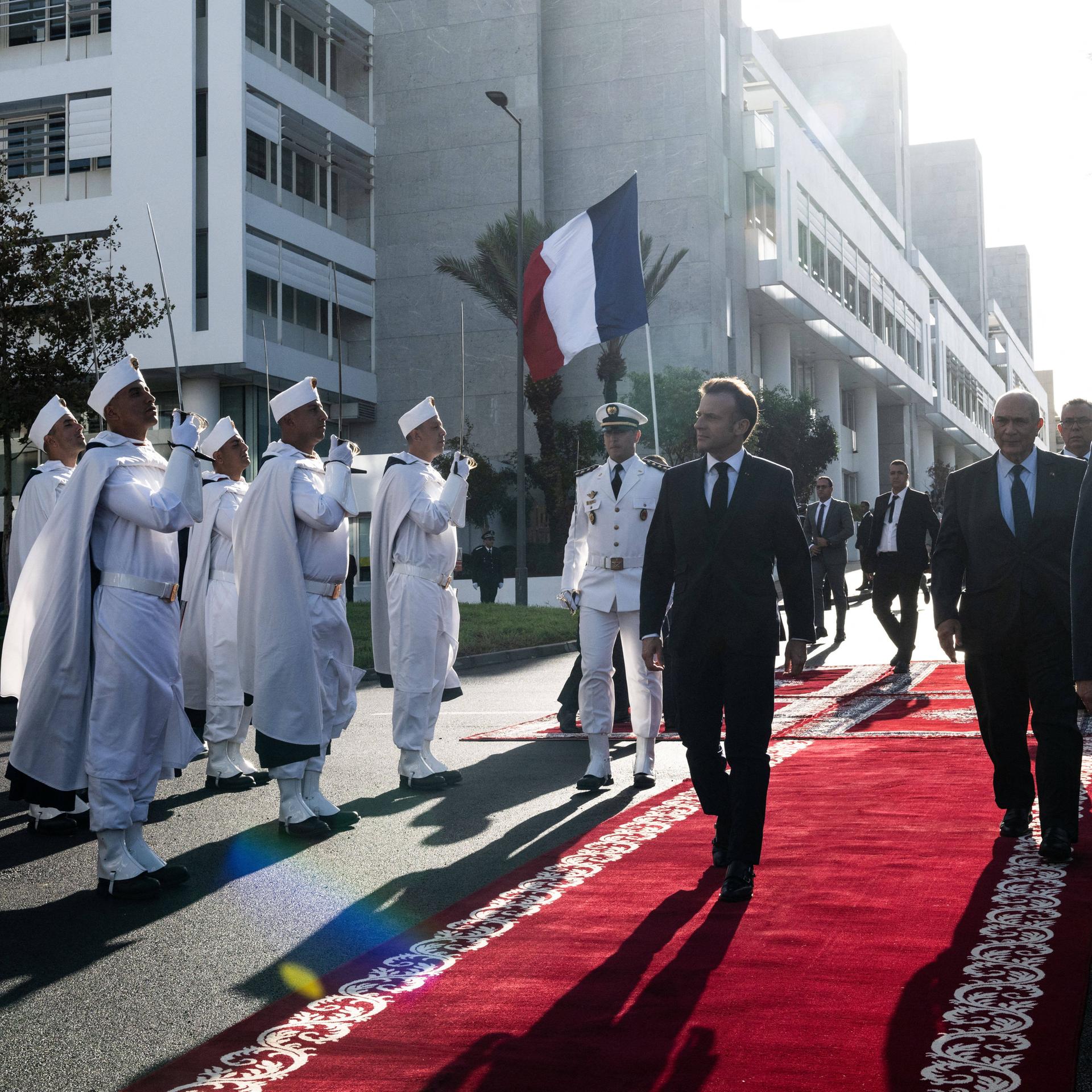 [lang:de-DE][male] Mexican President Claudia Sheinbaum welcomes FIFA Chief Gianni Infantino at the National Palace.