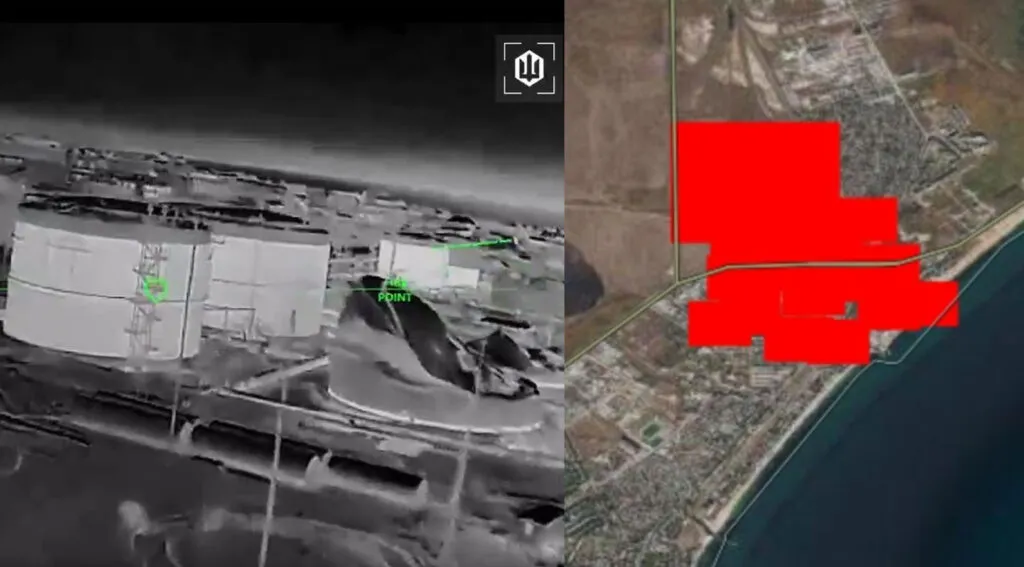 [lang:de-DE][male] Trümmer einer Drohne lösten über Nacht ein Feuer in einem Öldepot in Krymsk, Region Krasnodar, aus — 80 Feuerwehrleute wurden eingesetzt und das Feuer wurde bis zum Morgen eingedämmt.